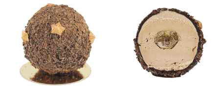Enrobage : Glaçage Noire (huile de pépin de raisins, Pâte de cacao, sucre, beurre de cacao,