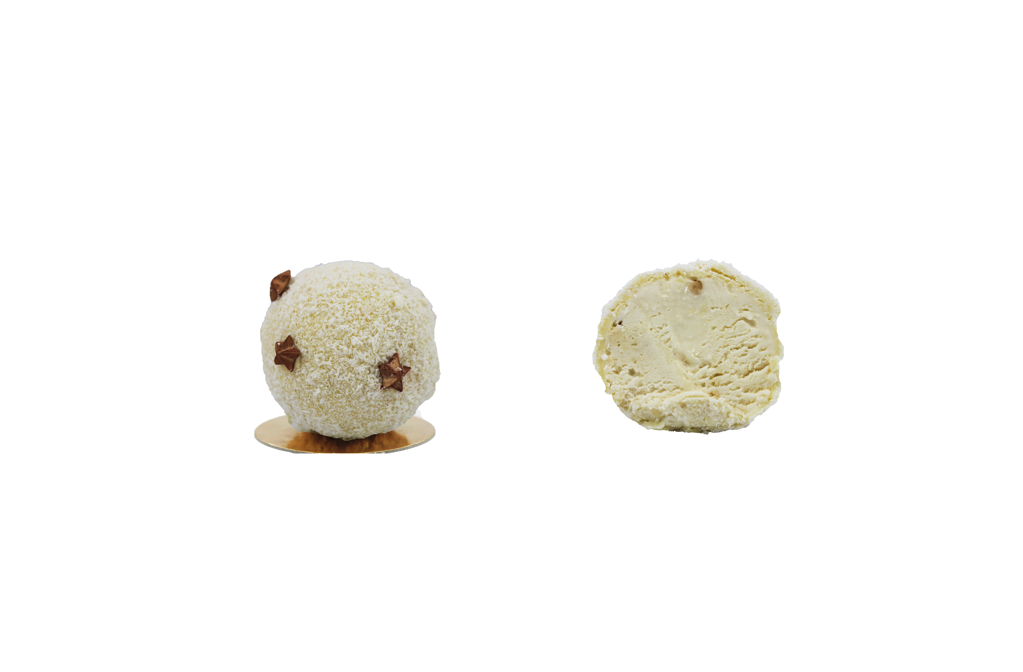 Crème glacée au lait et beurre fermier des Deux-Sèvres cookies au café avec marbrage cookies, enrobée de caramel chocolaté et copeaux